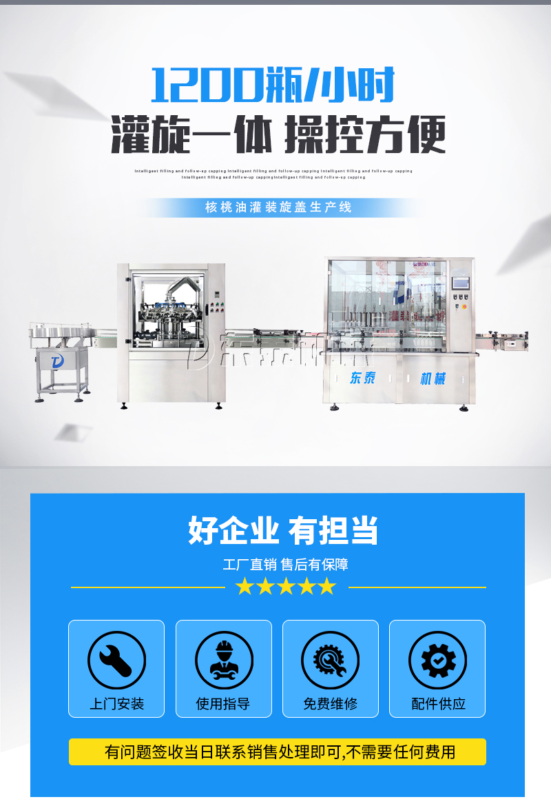 本灌裝流水線設備具有穩(wěn)定可靠、自動化水平高,相比同類產(chǎn)品有著更長的使用年限,維護簡單,整線中各設備的協(xié)調(diào)性、連貫性強,整線設計合理等特點。灌裝設備采用獨家專利系統(tǒng)結構,為當今行業(yè)內(nèi)水平,整線滿足量產(chǎn)化、集成化生產(chǎn)的需要。