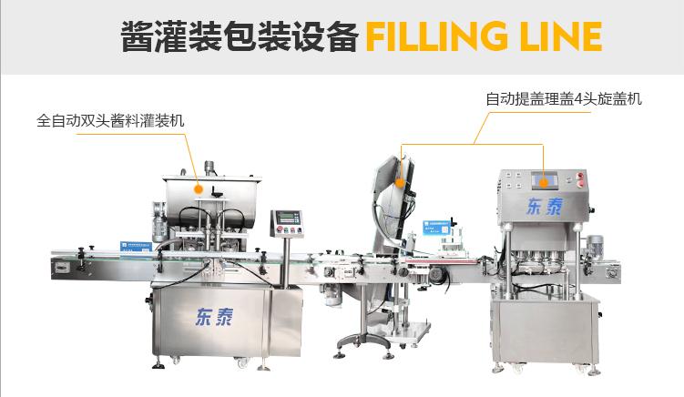 灌裝機采用活塞式灌裝原理,適用于調(diào)味品中帶顆粒并且濃度較大的辣椒醬、豆瓣醬、花生醬、香菇醬、果醬、牛油火鍋底料、紅油火鍋底料、蝦醬等較為粘稠醬類的灌裝。