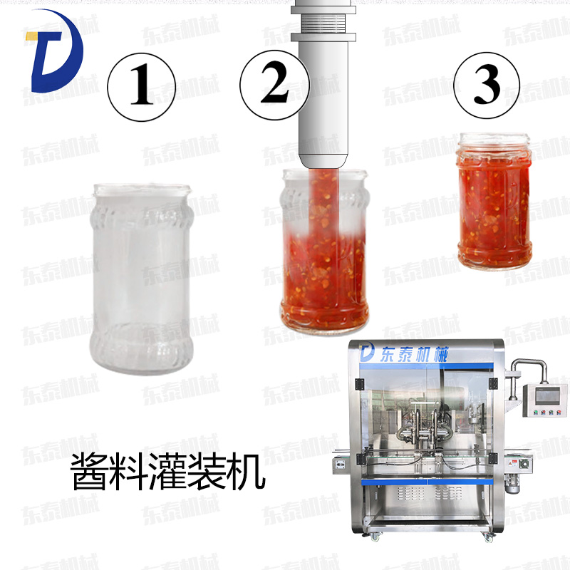灌裝機(jī)采用活塞式灌裝原理,適用于調(diào)味品中帶顆粒并且濃度較大的辣椒醬、豆瓣醬、花生醬、香菇醬、果醬、牛油火鍋底料、紅油火鍋底料、蝦醬等較為粘稠醬類的灌裝。